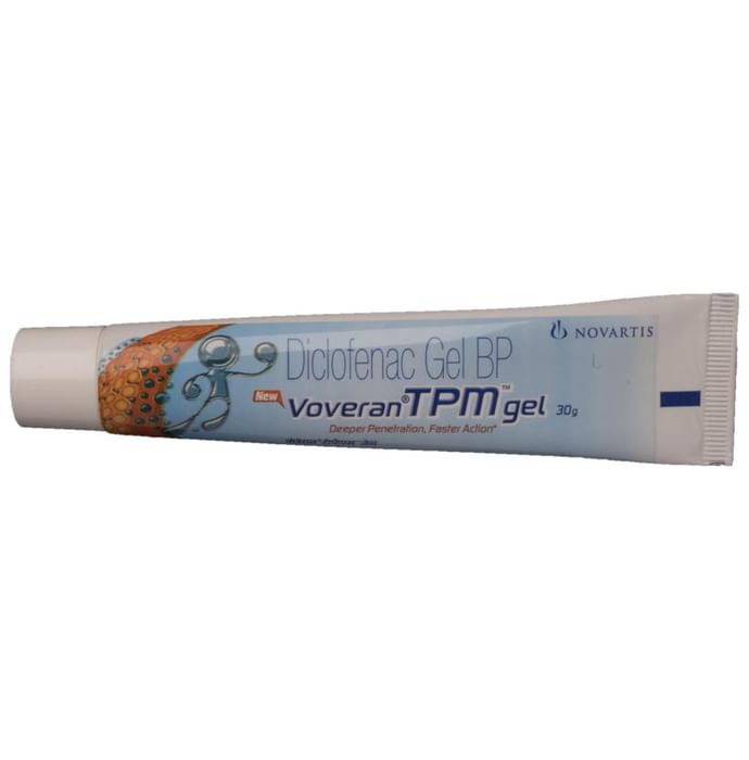 Voveran TPM Gel is a nonsteroidal anti-inflammatory drug (NSAID) used for the relief of joint pain of osteoarthritis. Voveran TPM majorly contains Diclofenac. Diclofenac works by reducing substances in the body that cause pain and inflammation. Voveran TPM Gel is used to treat joint pain caused by arthritis in the hands, wrists, elbows, knees, ankles, or feet. Voveran TPM Gel may not be effective in treating arthritis pain elsewhere in the body. Voveran TPM Gel is a smooth, non greasy gel with a light fragrance that goes away shortly after it is applied. Directions of use: Take some Voveran TPM gel and apply to the affected joint Massage to ensure appropriate application Warning: Apply Voveran TPM Gel to clean, dry skin that does not have any cuts, infections, or rashes Avoid exposing skin where you apply Voveran TPM Gel to sunlight and artificial light, such as tanning booths Do not get Voveran TPM Gel in your eyes, nose, and mouth Use under medical supervision.
