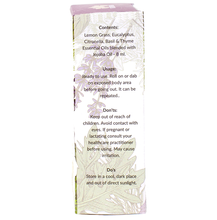 Vrinda Deodorant & Bug Repellant Roll On helps to repel bugs in the most natural way without using toxins that harm your mind & body. It is an effective non toxic and natural way to keep the mosquitoes away. | Key Ingredients: Lemon Grass Oil Eucalyptus Oil Citronella Oil Basil & Thyme | Key Benefits: The essential oils helps to keep the bugs away Ideal for use in aroma therapy, massage and during bath It has powerful therapeutic compounds that is effective and keeps the mosquitoes away | Directions For Use Apply roll on on the exposed body parts. | Safety Information: Read the label carefully before use Store in a cool dry place away from direct sunlight Keep out of reach of the children