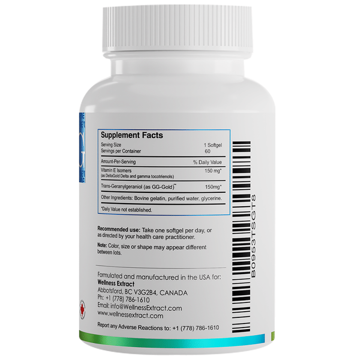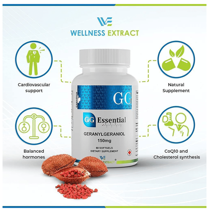 Wellness Extract GG Essential Geranylgeraniol 150mg Softgel Wellness Extract GG Essential Geranylgeraniol 150mg Softgel GG Essential is a GG supplement extracted from the Amazonian plant named Annatto (Bixa Orellana) using solvent and chemical-free technology. Dr Barrie Tan, a well-known researcher, is behind such an amazing technology. This makes GG Gold an ideal geranylgeraniol supplement, therefore standing superior among its competitors in the market.