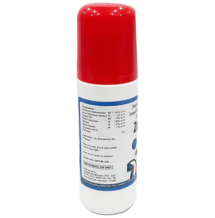 Zedo Roll On helps in relieving the pain and relaxes the muscles and helps to recover fast. These ingredients penetrate deep inside to produce warmth and are known for their pain-relieving properties. It is used in soothing pain due to Arthritis, strains, sprains and backache. | Key Ingredients: Didofenac diethylamine Linseed oil Menthol gel | Key Benefits: It is a topical pain relieving roll that provides longer-lasting results It is made up of optimized, fast-acting proprietary formula It can be used to allay pain associated with Arthritis, Sprain and Backache It is travel friendly and can be used in the gym, at home or while travelling | Directions For Use: Read the label carefully before use | Safety Information: Do not exceed the recommended dosage Store in a cool and dry place away from direct sunlight Keep out of reach of children